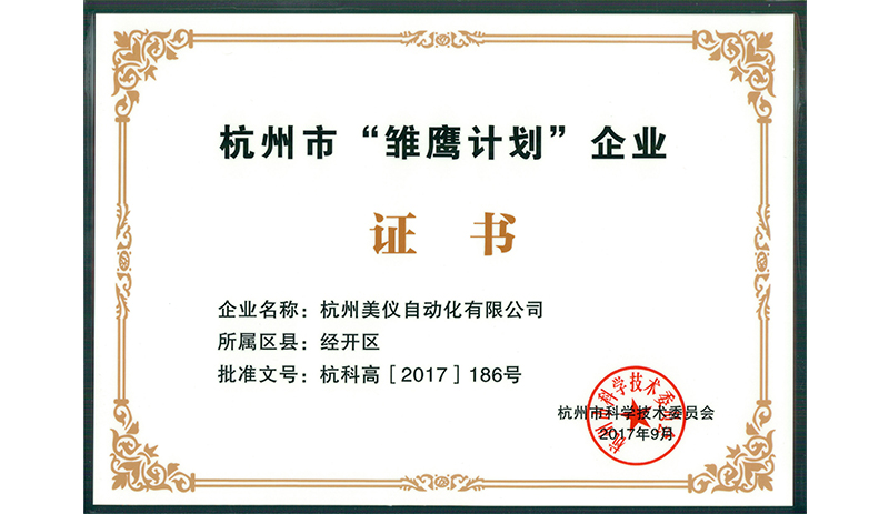 杭州博天堂网址自动化技术有限公司被杭州市政府列为第一批“雏鹰计划”重点科技型企业!