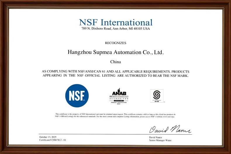 此次认证意味着,美仪电磁流量计在材料安全性、制造工艺及健康标准方面,均已达到美国与加拿大饮用水系统的严格要求,可广泛应用于城市供水、民用饮水、食品饮料及其他高洁净工况场合。