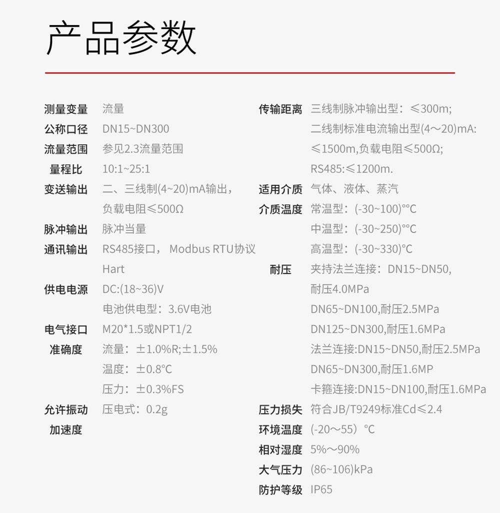 流量:±1.0%R;±1.5% 温度:±0.8℃ 压力:±0.3%FS
