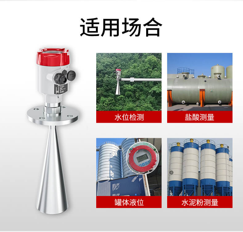 本产品波束能量低,对人体及环境均无伤害,还具有不受介质比重的影响、不受介电常数变化的影响、不需要现场校调等优点,广泛应用江河、水库、湖泊、灌渠、河道等自然水域水文监测场合。