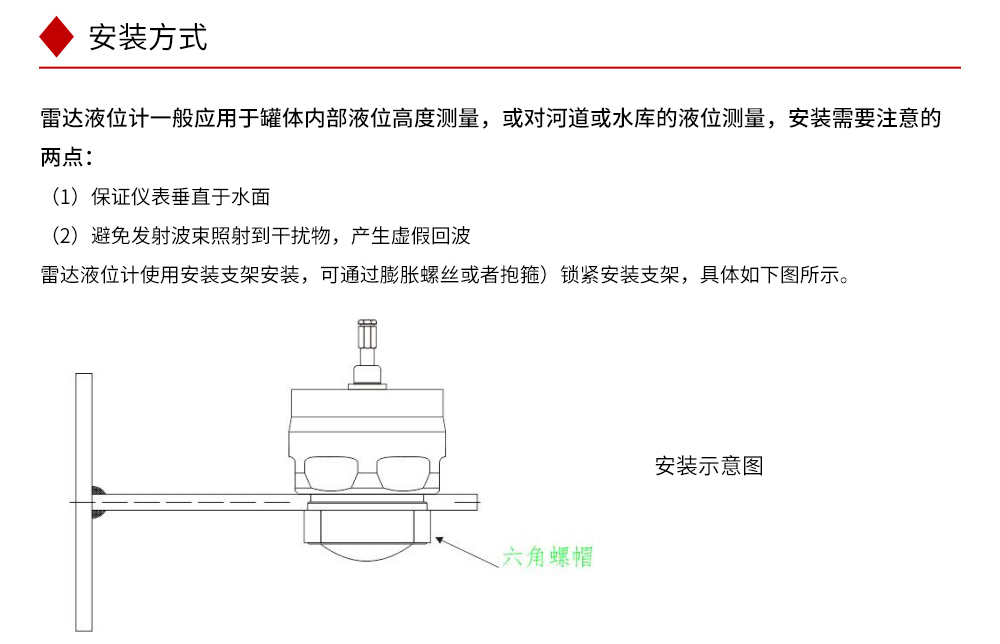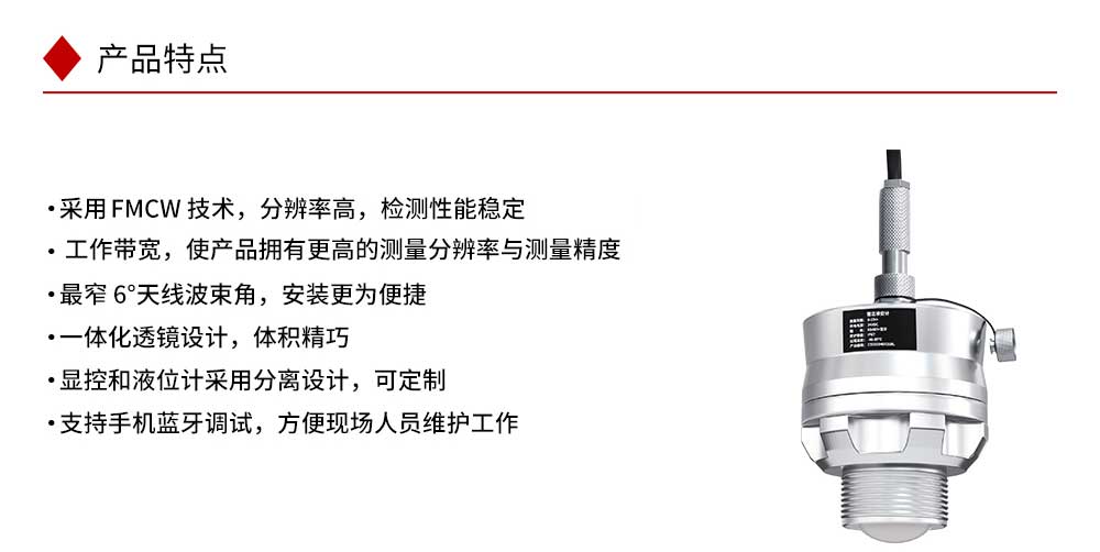 WSR310雷达液位计是调频连续波(FMCW)雷达产品,可以对工业生产过程中封闭式或敞开容器中液体的高度进行非接触式连续测量。 检测距离远,波束能量低,可安装于各种金属、非金属容器或管道内。雷达液位计对人体及环境均无伤害,还具有不受介质比重的影响、不受介电常数变化的影响、不需要现场校调等优点。